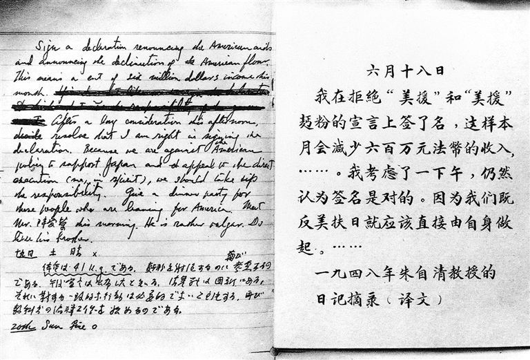 1948年6月,朱自清在日记中谈到拒绝领取美援面粉一事。 图片来源:视觉中国