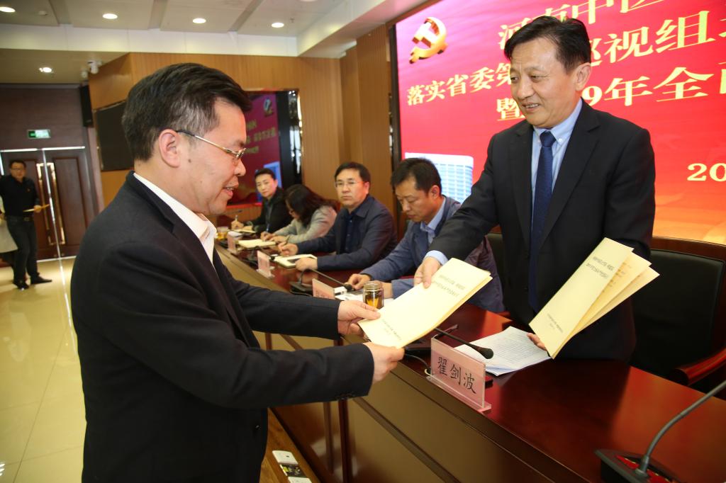 会上,医院党委副书记张晓东宣读了《医院关于省委第一巡视组反馈意见整改工作方案》,医院纪委书记杨国营传达了2019年度省卫健委纪检监察工作会议及党风廉政建设、行风建设工作会议精神,安排部署了医院2019年度纪检监察工作。部分中层干部代表向医院党委书记翟剑波递交了《全面从严治党保证书》。